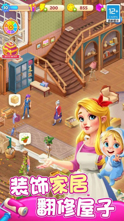 游戏包含多个不同功能的区域,从客厅到卧室,从厨房到花园,每个房间都有独特的风格和大量待翻修的家居。特别设计的日记系统让你可以随时回顾游戏中的精彩瞬间和人物趣事。在合成翻修物品时,你会感受到如同在装饰自己真实的家一般的满足感。随着游戏进程,你还能解锁更多精美的家具和装饰品。