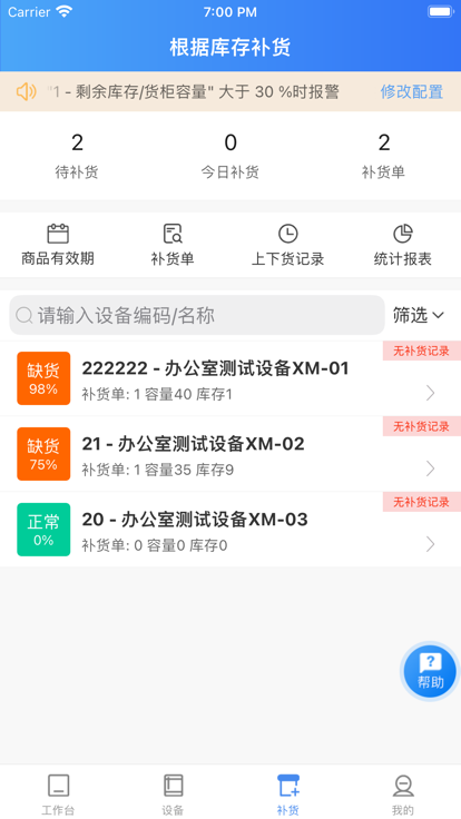 设备列表:集中管理所有智能售货机,实时监控设备运行状态;