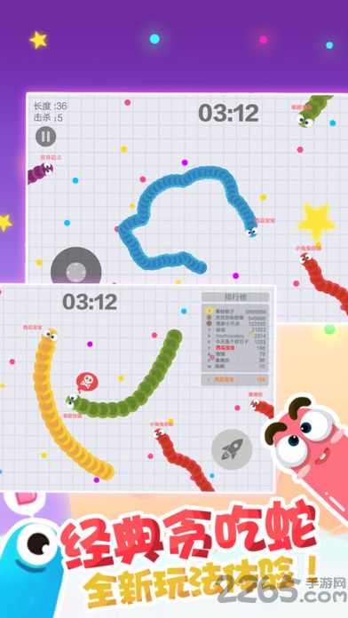 葫芦娃贪吃蛇不死版是一款极具创新性的对战类贪吃蛇手机游戏,它将经典玩法与现代竞技元素完美融合,为玩家带来前所未有的游戏体验。游戏不仅保留了传统贪吃蛇的核心乐趣,还加入了丰富多样的道具系统,让每场对战都充满变数与惊喜。独特的奖励机制和全面的竞技玩法,配合清新脱俗的游戏画风,让玩家在休闲娱乐的同时也能感受到紧张刺激的竞技快感。如果你渴望体验这款与众不同的贪吃蛇游戏,现在就可以前往2265安卓网下载畅玩!