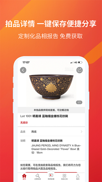 【拍卖现场情况尽收眼底】平台采用4K超高清直播技术,配备专业的多机位切换系统,确保用户能清晰看到拍品细节和现场竞价情况。直播过程中还提供实时字幕翻译服务,解决语言障碍问题。用户可以随时查看当前竞价、历史成交记录等数据,系统还会根据用户浏览记录智能推荐相关拍品。专业的拍卖师同步解说,让用户不错过任何重要信息。