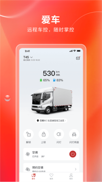 比亚迪卡车App是一款集智能控制、车辆管理、出行服务于一体的专业应用,专为现代卡车用户打造。它不仅提供基础的远程操控功能,还整合了比亚迪生态系统的各项优势资源,通过AI技术和大数据分析,为用户提供个性化的用车建议和预警服务,让每一次出行都更加安全、高效。
