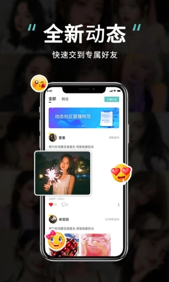 动态发布-分享自己的动态,记录自己的生活。新增视频动态功能,支持15秒短视频分享。优化图片编辑工具,新增10款滤镜和贴纸,让你的分享更加生动有趣。动态页面全新改版,浏览体验更流畅。