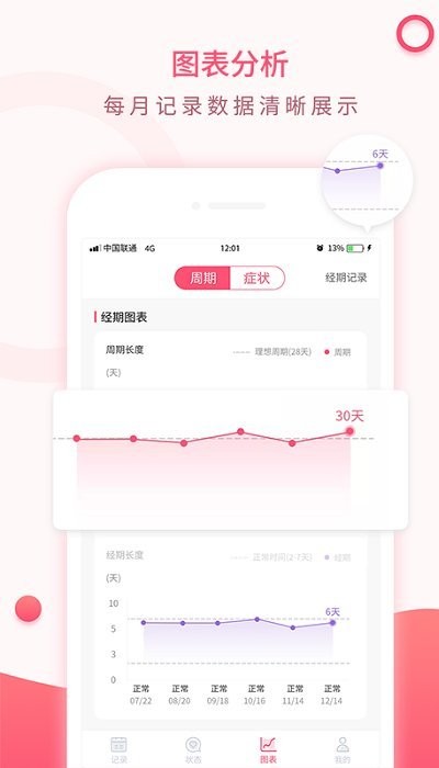 智能预测经期:采用先进的时间序列分析算法,结合用户记录的异常情况(如压力、作息变化等),动态调整预测模型。预测结果会随着新数据的录入不断优化,准确率随时间提升。