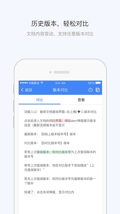 【版本对比】智能版本比对工具可高亮显示文本修改、格式调整、批注变更等差异内容,支持生成详细的版本变更报告供追溯查阅。