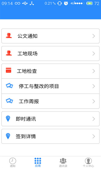 该应用以广泛使用的智能手机为硬件平台,为建筑行业主管人员提供了丰富的功能模块,包括收件箱、发件箱、公文通知、工地检查、工作周报等实用功能。这些功能全面覆盖了建筑行业日常管理的各个环节,能够满足不同场景下的工作需求。特别值得一提的是,建管通具有出色的兼容性,目前已经支持市场上绝大多数主流手机型号,确保用户能够顺畅使用。