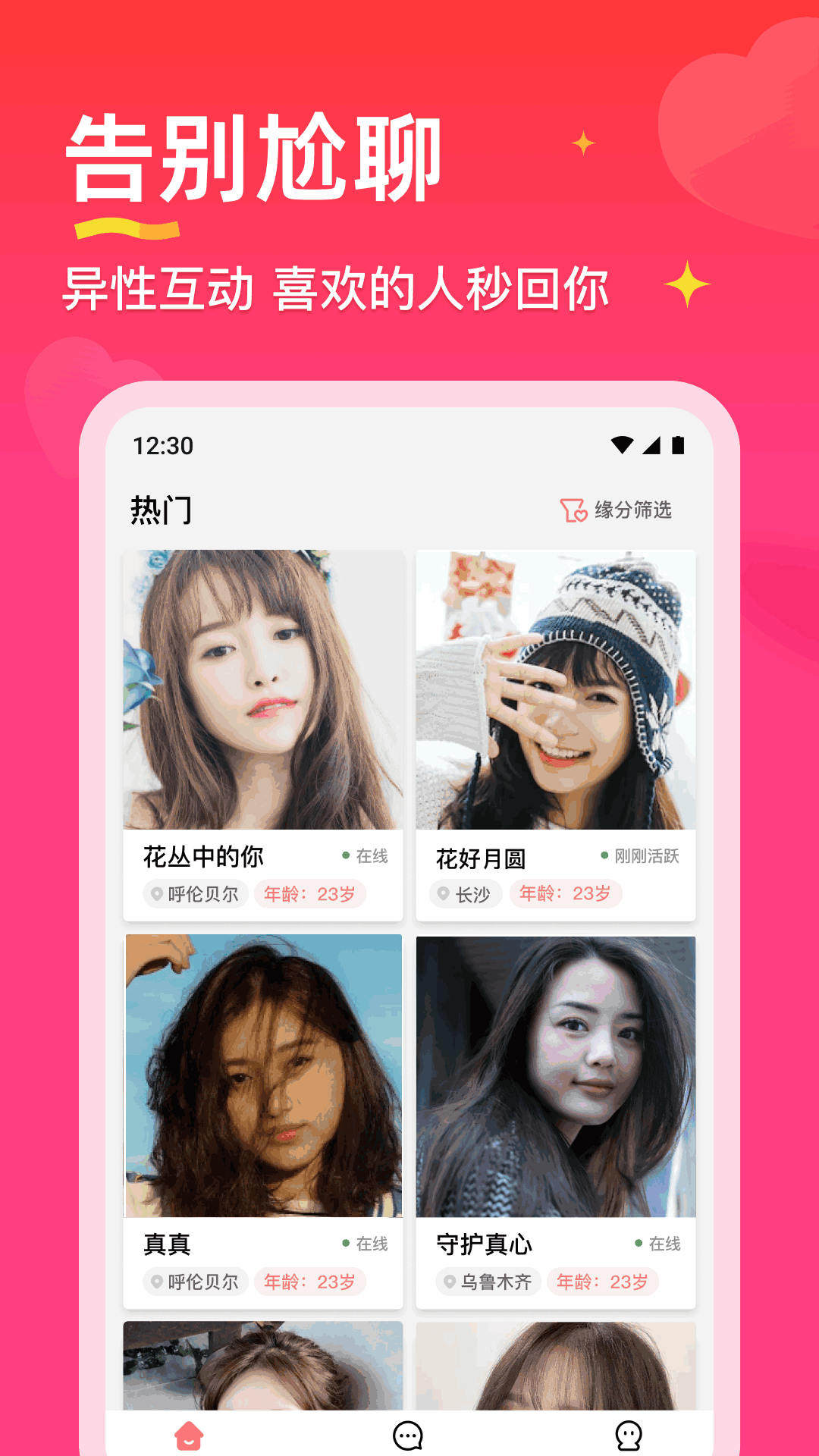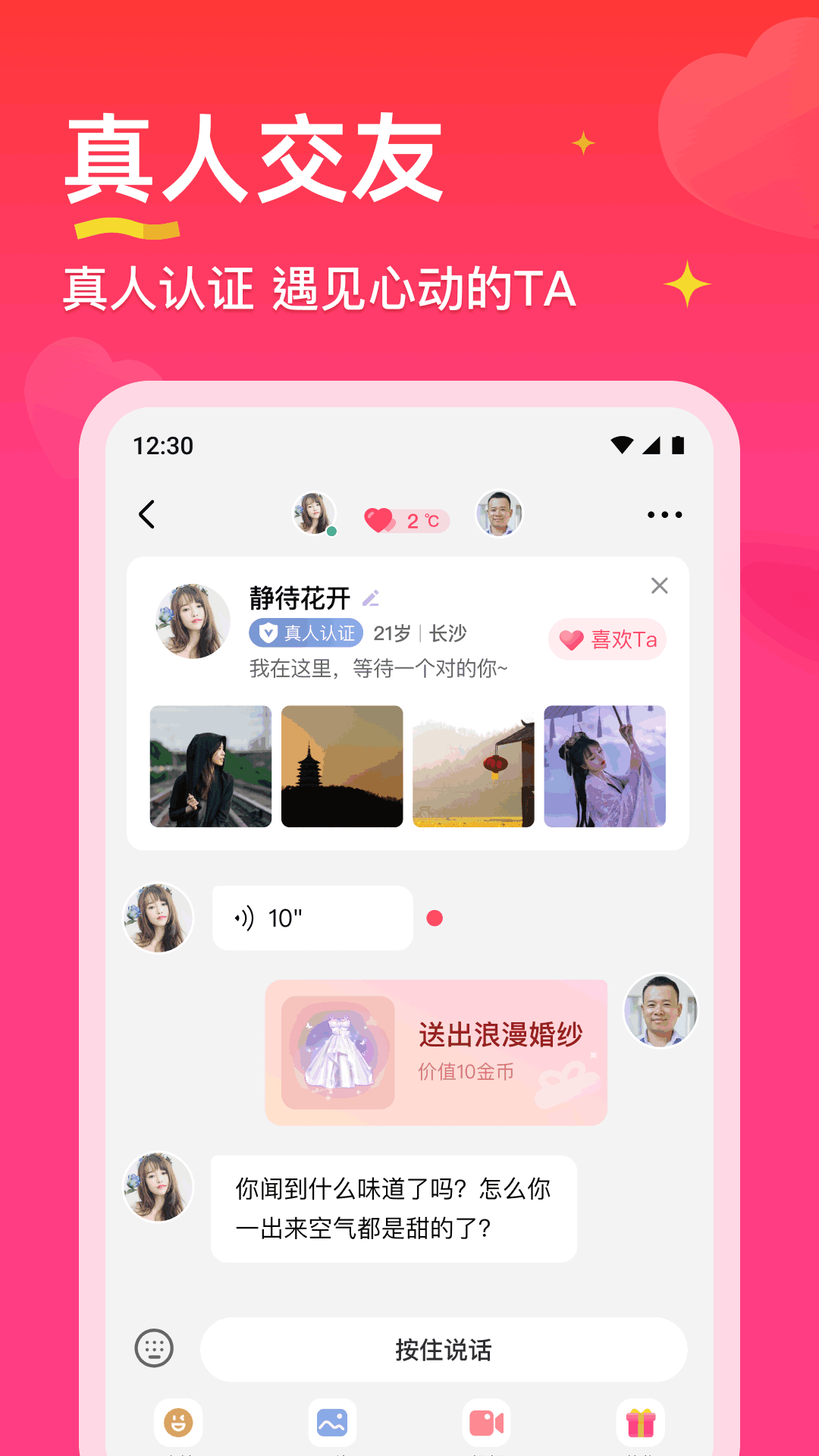 真心聊陌生交友视频聊愿相遇良缘是一款专为渴望脱单和寻找真爱的用户打造的实时在线交友APP,它不仅是你的恋爱神器,更是你拓展社交圈子的绝佳平台。在这里,你可以通过文字、语音和视频等多种方式与来自全国各地的单身人士互动交流,轻松打破地域限制,结识志同道合的朋友。