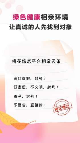 梅花再婚相亲坚持实名制认证,要求所有用户必须使用真实身份信息注册,确保交友环境的真实可靠。平台严格杜绝任何不诚信行为,一经发现立即处理,维护良好的交友氛围。我们理解再婚对人生的重要性,因此提供更专业、更贴心的服务,帮助用户找到真正适合的伴侣。无论你离婚多久,只要怀着真诚的再婚意愿,都能在这里遇到理解你的有缘人。