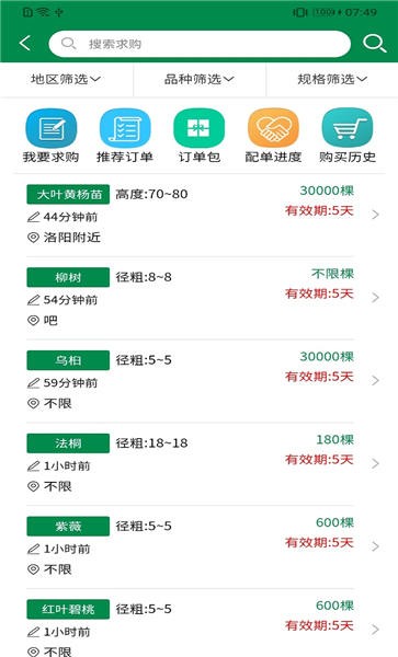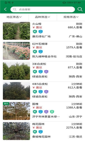 中州花木网安卓版具有多项独特功能:提供全面的苗木种植攻略,帮助用户解决种植过程中的各种问题;实时更新全国各地的苗木供应信息,让您掌握最新市场动态;定期推送行业相关资讯,助您把握市场脉搏;打造专属苗木从业者的交流社区,促进经验分享与合作;完善的交易记录查询系统,方便用户随时查看历史交易详情。这些特色功能共同构成了一个功能强大、使用便捷的苗木交易平台,为您的苗木生意提供全方位的支持。