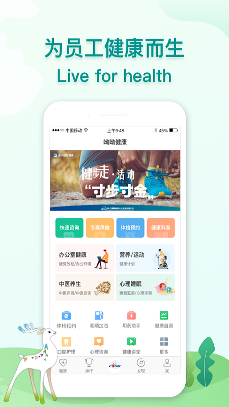 健康评估:多类健康评测问卷,及时发现个人健康风险。涵盖心理健康、亚健康等20余个专业评估维度。