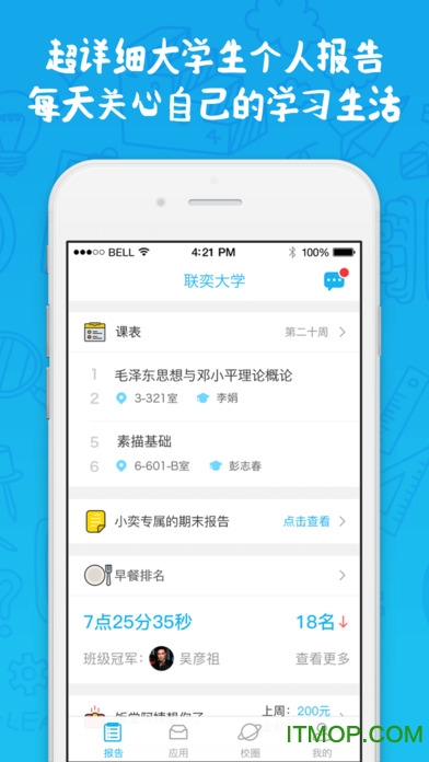 奕报告苹果手机版是一款专为高校师生打造的智能化学习分析平台,集数据查询、校园服务、决策支持于一体。通过这款应用,用户可以轻松查询课表、成绩、校园消费记录等各类信息,还能获取个性化的学习分析报告。无论是学生、教师还是校领导,都能从中获得便捷高效的服务体验。目前该应用已在IT猫扑等平台开放下载,欢迎广大用户免费体验!