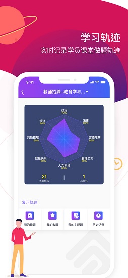 大纲学习,定计划,学大纲,做练习,记录学习轨迹。系统自动生成可视化学习报告,详细记录每个知识点的掌握情况,让进步看得见。