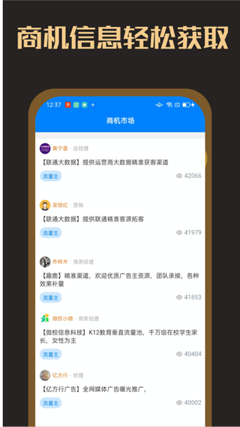 众人悬赏app是一款专为企业商务人士打造的综合性商业合作平台,致力于为用户提供高效、便捷的资源对接服务。在这里,您可以轻松寻找优质客户,获取最新行业资讯,发布货源信息与销售渠道,实现多方共赢的商业合作。软件功能丰富多样,操作简单直观,无论是企业资源整合还是个人商务拓展,都能满足您的需求,快来体验这款助力商业发展的利器吧!