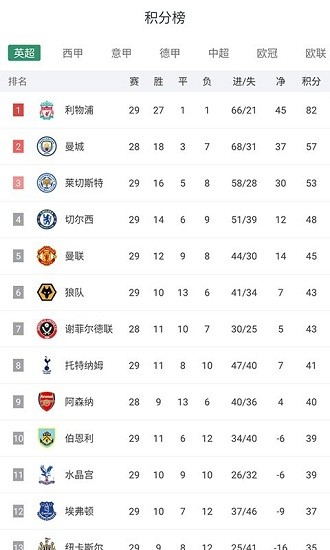 【积分榜】查询各大联赛的完整积分榜单,了解球队排名变化