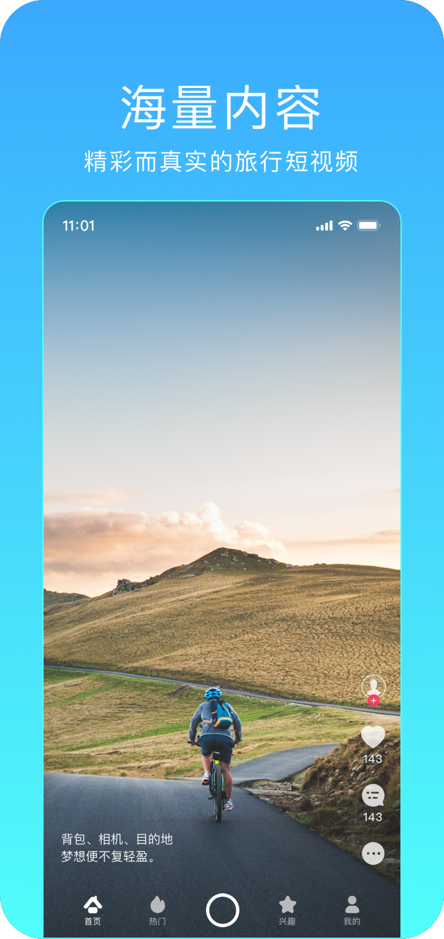 海量真实精彩的旅行短视频内容,涵盖全球热门目的地和冷门秘境;全视角展示热门旅行目的地,提供360度沉浸式体验;个性自我、寻找同类的兴趣部落,让你轻松找到志同道合的旅友;精选旅行线路,由专业规划师和资深驴友提供行程参考;首个版本上线,期待用户们的宝贵建议,我们将持续优化产品体验。此外,平台还支持个性化推荐算法,根据你的浏览偏好智能推送感兴趣的内容。