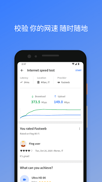 检测Wi-Fi入侵者,在每次扫描时显示您的新未知设备,并支持一键拉黑可疑终端。使用Fing的Wi-Fi网络扫描仪扫描网络,并发现连接到任何网络的所有设备,包括隐藏的物联网设备。运行互联网速度测试、WiFi速度测试、下载速度和上传速度分析和延迟,提供专业级的网络性能评估。获取IP地址、MAC地址、设备名称、模型、供应商和制造商的最准确设备识别,支持设备备注功能方便管理。NetBIOS、UPnP、SNMP和Bonjour名称,属性和设备类型的高级设备分析,深入挖掘设备详细信息。包括端口扫描、设备ping、traceroute、DNS查找和LAN唤醒等专业网络工具,满足高级用户需求。注册以接收手机和电子邮件的网络安全和设备警报,第一时间掌握网络异常情况。