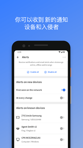 查看您家附近经过的所有设备,包括智能家居产品和移动终端,让您对网络环境了如指掌。在加入您的网络之前自动阻止入侵者和未知设备,通过智能算法识别可疑连接,有效防止蹭网行为。设置家长控制功能,以安排屏幕时间和暂停互联网访问,支持自定义时间段的网络管控,帮助管理孩子的上网时长。按设备分析带宽使用情况,以查找正在使用的用户,精准定位占用大量带宽的设备。不在家时总是知道谁在家,通过远程监控功能随时查看联网设备状态。找到Wi-Fi甜蜜点,通过信号强度热力图优化路由器摆放位置。自动化网络速度测试并获取用于ISP性能基准测试的报告,支持定期自动测试生成历史数据对比。通过开放的端口检测和网络漏洞分析保护您的家庭网络,及时发现潜在安全隐患。