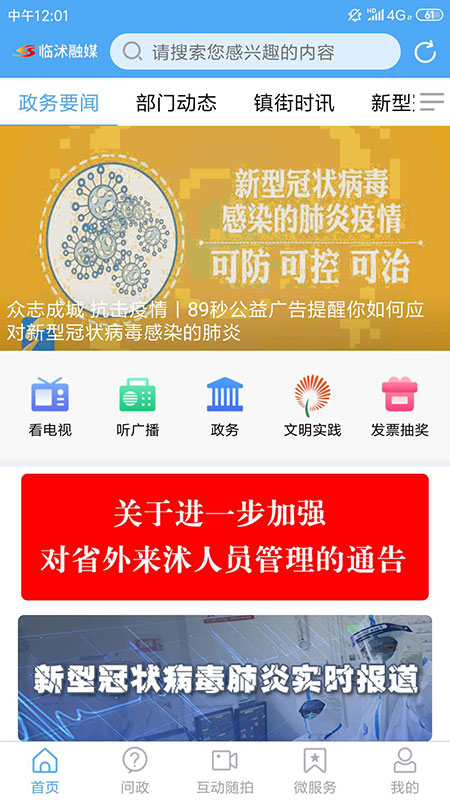 临沭融媒设置了政务要闻、部门动态、镇街时讯、视角临沭、诵读等栏目,能看电视、听广播、阅报纸,并能分享评论、上传短视频。平台整合了丰富的媒体资源,可实时收看临沭TV-1、临沭TV-2和县内各大活动的精彩直播,可收听临沭人民广播电视台FM107.4。同时,注重便民服务,打造问政、微服务版块,用户可与县内各部门互动,进行政策咨询、问题投诉等操作。