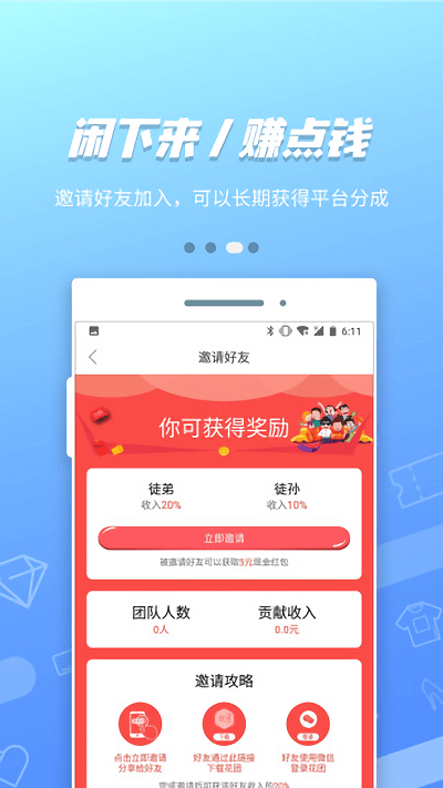 花团提供了多种赚钱方式,即使不购物也能获得收益。通过社交平台分享商品链接,当好友通过你的链接下单时,你就能获得推广奖励。邀请好友注册使用,更能长期享受平台分成。这些收益都可以随时提现,让你在闲暇时间轻松增加额外收入。