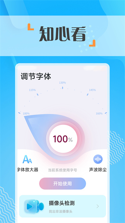 知心看app是一款专为视力不佳或需要大字体阅读的用户设计的贴心软件。它不仅能智能调节系统字体大小,还集成了多种实用功能于一体。通过简洁直观的界面,用户可以轻松找到字体放大、放大镜、日历等核心功能模块。无论是查看手机屏幕内容,还是阅读纸质文档,都能获得清晰舒适的视觉体验。软件特别注重操作便捷性,让老年人和视力障碍者也能快速上手,同时内置的声波除尘功能还能为手机进行简单清洁,真正实现了一站式生活助手。