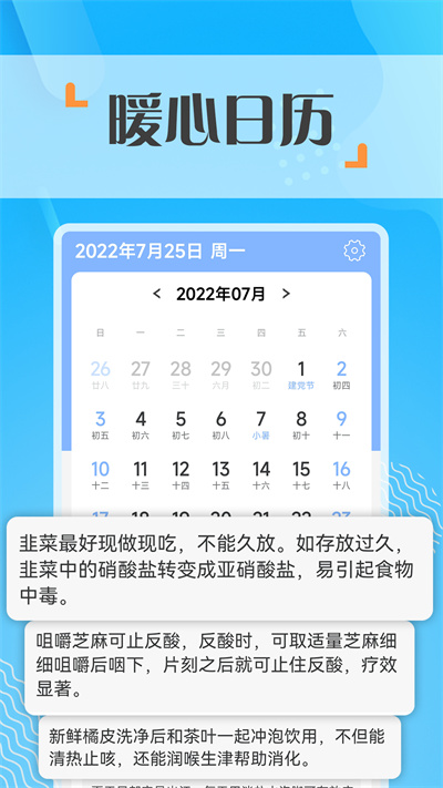 【日历助手】智能日历功能不仅能查看每日日程,还能自动识别重要日期并提醒。支持农历和节假日显示,帮助用户更好地规划生活出行,让每一天的安排都井井有条。