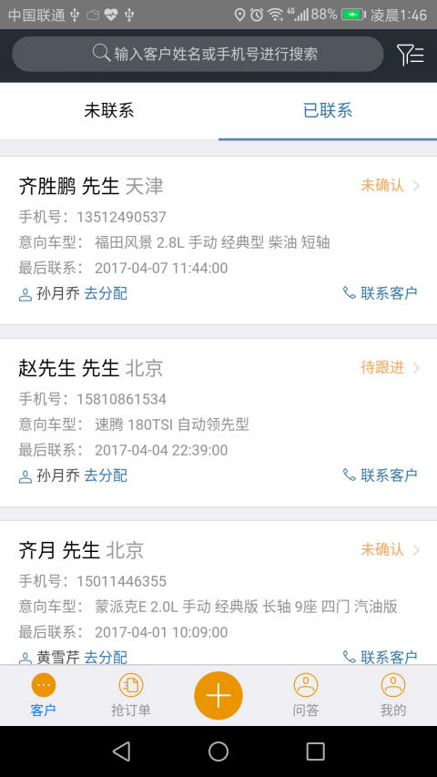 卡片式线索列表,线索重点一目了然,直观展示客户关键信息;