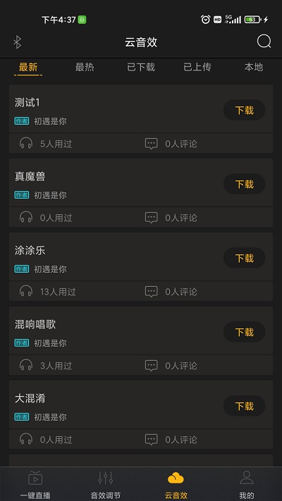 【云音效】支持从云端下载最新音效资源,也可以上传本地音效文件,打造个性化的音效库,随时满足不同直播场景的需求。