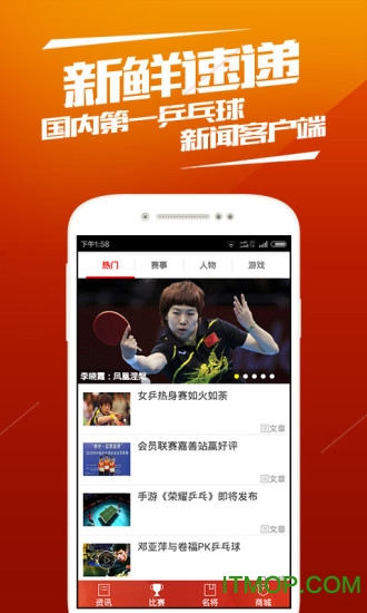 乒乓中国app是一款由中国乒协官方打造的权威乒乓球资讯平台,集赛事直播、专业分析、互动社区于一体。作为国内领先的乒乓球垂直领域应用,它不仅提供全球顶级赛事的实时战报,还拥有独家球员专访和深度战术解析。用户可以通过个性化推荐获取最感兴趣的乒乓内容,同时享受高清赛事集锦和即时数据统计服务,让每一位乒乓球爱好者都能在这里找到属于自己的乒乓天地。