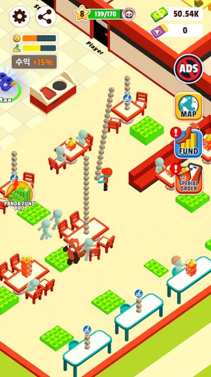 在熊猫厨房这款充满创意与乐趣的模拟经营游戏中,玩家将化身为一位怀揣梦想的年轻厨师,开启一段从街头小摊到美食帝国的精彩旅程。游戏初期,玩家将获得一个简单朴素的厨房空间,配备基础厨具和有限食材,以及几张供顾客用餐的桌椅。随着游戏的深入,玩家将逐步解锁更多精彩内容,体验从零开始打造美食王国的成就感。