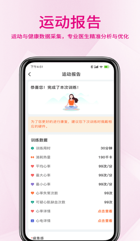 根据身体的各项数据,定制健身计划。系统会综合考虑用户的年龄、体重、运动习惯等20余项指标,生成最适合的运动方案。方案包括运动类型、强度、时长等详细建议,并会根据用户的实际执行情况动态调整。