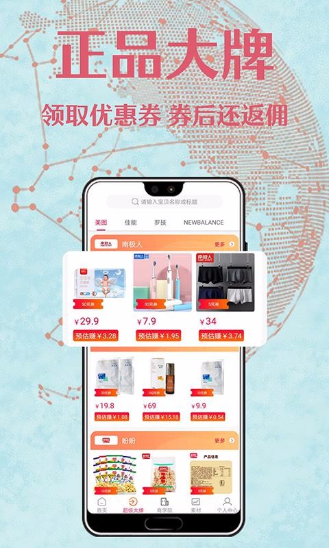 《创享购》是一款专为购物爱好者打造的智能返佣平台,汇聚海量正品大牌商品,让您享受超值购物体验。在这里,不仅能以超低价购买优质商品,还能通过返利机制获得额外收益。平台提供便捷的搜索功能,只需输入关键词即可精准匹配心仪商品,更有智能推荐系统为您精选好物。独特的分享赚钱模式让您在社交圈分享商品的同时轻松赚取佣金,实现购物与收益的双重乐趣。无论是日常用品还是潮流新品,创享购都能满足您的多样化需求。