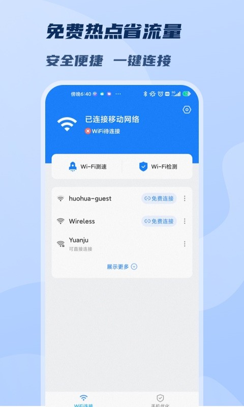 wifi极速畅连app是一款专为提升网络连接体验而设计的智能工具,它不仅能够帮助用户快速发现并连接优质wifi热点,还集成了手机优化功能,让您的设备运行更加流畅。通过先进的算法和简洁的操作界面,这款应用让网络连接变得前所未有的简单高效。无论是日常上网冲浪还是紧急情况下的网络需求,wifi极速畅连都能为您提供稳定可靠的解决方案,让您随时随地享受高速网络带来的便利。