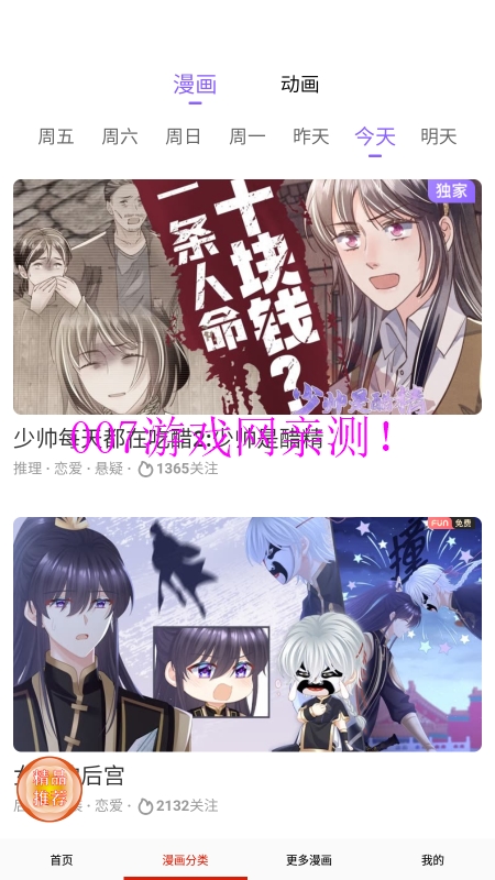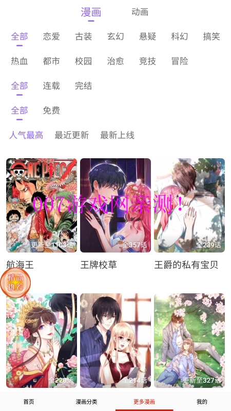 丰富资源:日漫、国漫、韩漫等动漫资源应有尽有,满足你的追漫期待;每周持续更新最新剧集,保证内容新鲜度。排行榜单:这里提供了全网观影排行榜单,热门动漫、动画片尽在掌握;包含新番榜、人气榜、评分榜等多维度排行。每周列表:每周列表让用户可以了解当前有哪些资源更新,追漫更方便;支持订阅提醒功能,不错过任何更新。