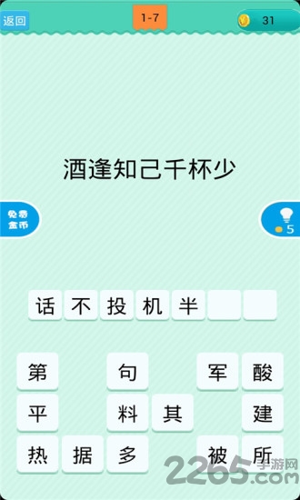 猜下句益智游戏是一款寓教于乐的休闲益智类游戏,专为喜爱中华传统文化的玩家设计。在这款游戏中,玩家需要根据系统提供的经典诗词、成语或谚语的上半句,准确猜出对应的下半句。每答对一题即可顺利通关,随着关卡推进,题目难度也会逐步提升,既考验玩家的文学积累,又能在轻松愉快的氛围中拓展知识面。