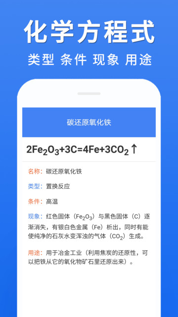 【化学方程式】该功能收录了初中化学教材中涉及的所有化学方程式,每个方程式都配有详细的反应类型说明、反应条件分析、实验现象描述以及实际应用场景介绍,帮助学生全面掌握化学反应的各个方面。