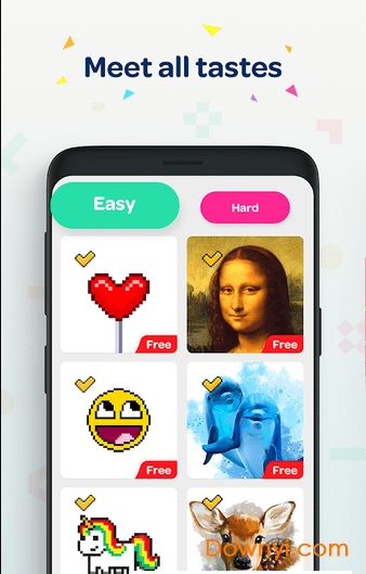 精简的美术画面,采用高清画质呈现,给你不一样的视觉体验!游戏界面简洁大方,色彩鲜艳明快,让每一次填色都成为视觉享受。