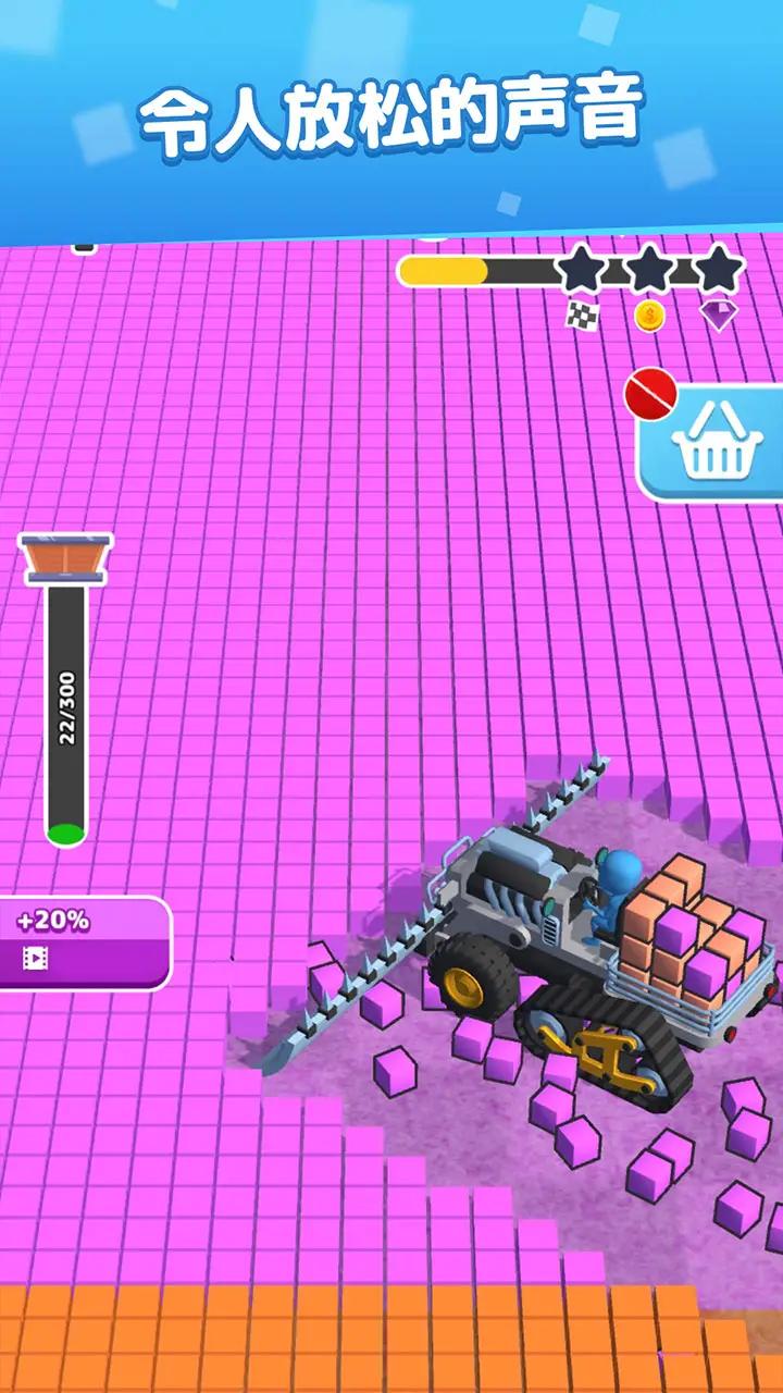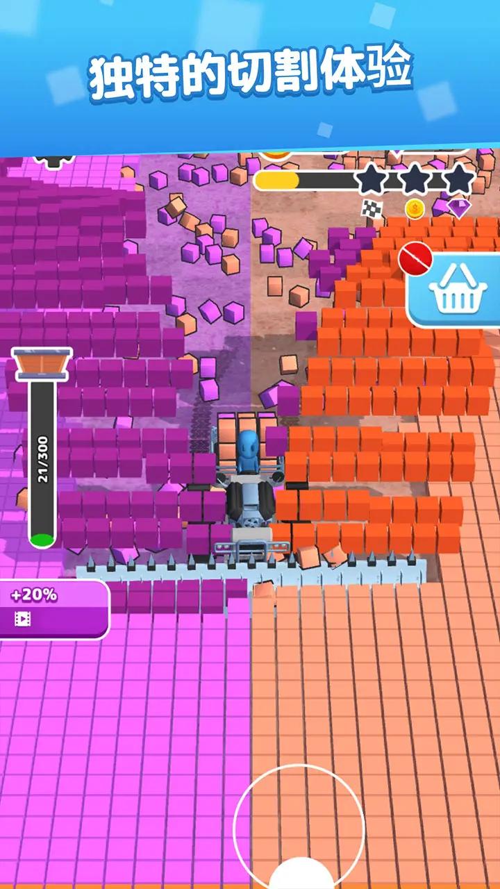方块切片机是一款极具创意与挑战性的三维闯关游戏,玩家将在充满活力的虚拟世界中操控角色四处移动,通过撞击和消除三维立方体建筑来完成关卡目标。游戏的核心玩法是将所有方块碎片带到指定区域进行升级,每一次成功消除都会触发炫酷的能量释放特效,让玩家体验到所有方块瞬间消失的爽快感。这款游戏不仅拥有精美的画面和流畅的操作手感,还融入了丰富的关卡设计和多样化的挑战模式,为玩家带来前所未有的休闲娱乐体验。这个夏天,方块切片机将带你玩转不一样的轻松趣味世界!