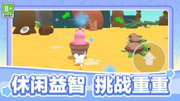 卡皮主角设定是游戏最大的亮点之一,主角卡皮拉巴是一只呆萌可爱的生物,圆滚滚的外形配上灵动的表情,这种新颖讨喜的角色设定极具辨识度,能迅速吸引玩家的注意并产生情感共鸣。游戏背景设定在充满奇幻色彩的岛屿上,这个世界由多个风格迥异的地图区域组成,从郁郁葱葱的丛林到阳光明媚的沙滩,再到幽深神秘的洞窟,场景变化多端,营造出浓厚的冒险氛围。每个关卡都精心设计了多种机关与隐藏谜题,这些谜题解法多样且富有挑战性,需要玩家灵活思考、不断尝试才能找到突破口。游戏还巧妙地将剧情穿插在探索过程中,通过推进任务可以逐步解锁故事背景,在冒险途中会遇到各种性格鲜明的角色与突发事件,让整个游戏体验更具代入感与层次感。