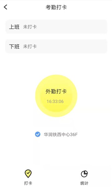 2、进入打卡页面,即可完成上下班打卡操作,系统会自动记录考勤数据。