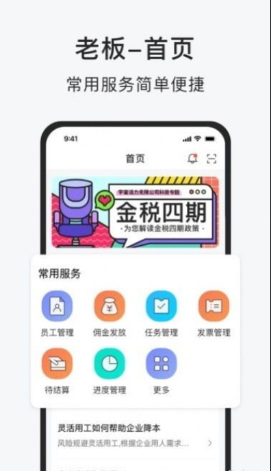 智运佣金结算是一款专为企业及员工设计的智能办公软件,集成了高效管理与便捷操作于一体。其简洁直观的首页布局让用户快速定位所需功能,无论是老板还是员工都能获得流畅体验。软件涵盖考勤打卡、员工管理、薪资结算等核心模块,同时支持订单任务实时追踪,分类明确,大幅提升工作效率。通过智能化财税管理工具,企业可轻松实现业务数据同步与风险管控,让办公更省心、协作更高效。