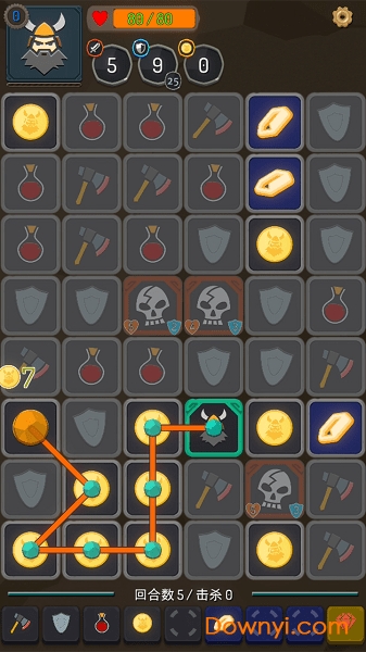 关卡中还有的元素是位置的敌人,当你碰到这些符文的时候,你要与他们进行决斗,尽量的战胜他们。战斗系统采用独特的回合制消除玩法,需要玩家巧妙运用不同符文的效果。