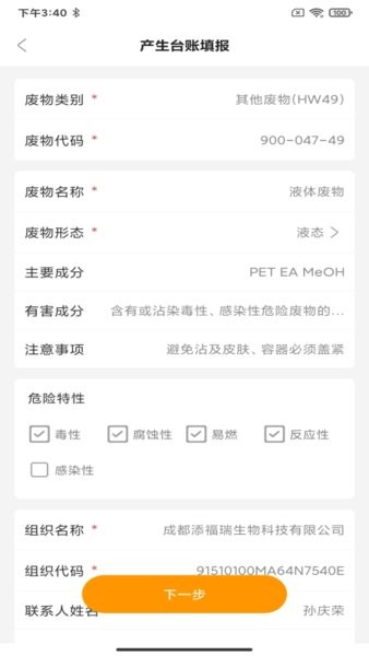 危废标识管理app内置《国家危险废物名录》数据库,用户无需手动填写,只需输入对应代码即可自动匹配并录入相关信息,既高效又避免人为错误。同时,软件支持通过扫描营业执照二维码快速录入企业基础信息,简化操作步骤,提升数据准确性。
