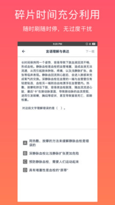 全球各大主流考试内容,涵盖从基础到进阶的完整题库,所有题目均配有专业解析,内容持续更新保持时效性。碎片化时间管理功能,支持离线下载和定时练习,让用户随时随地都能有效利用零散时间进行学习。智能算法系统能够根据用户的学习轨迹和答题表现,动态调整学习计划,提供最适合的刷题方案。纯净的学习环境,完全去除广告干扰,让用户能够心无旁骛地投入学习。此外,软件还提供学习数据统计功能,帮助用户全面了解自己的学习状况。