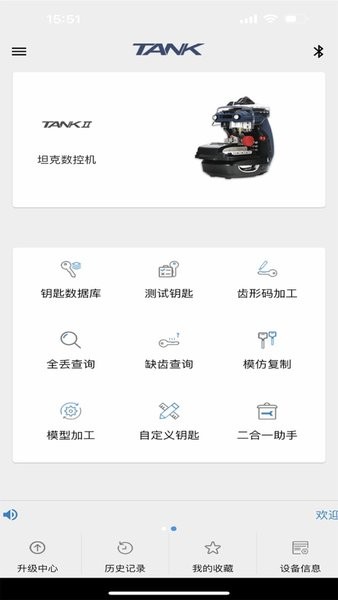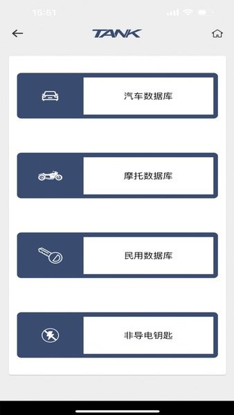 启动TANKAPP进入主界面,选择钥匙数据库功能模块;