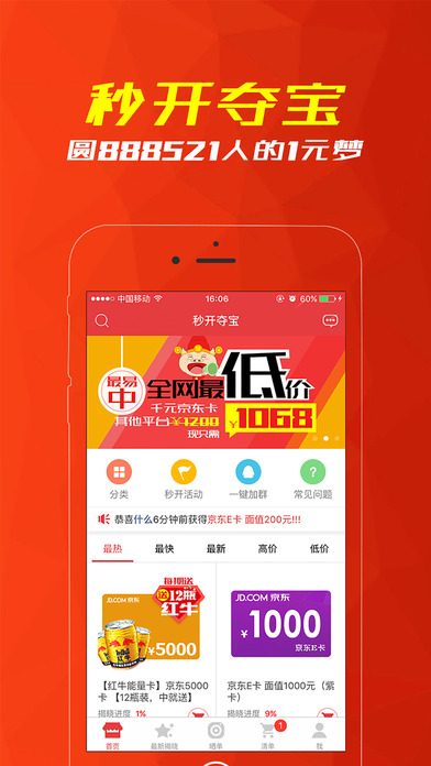 秒开夺宝重新定义了现代购物方式,开创了"一元云购"的新纪元。这个充满活力的平台不仅是一个简单的购物软件,更是一个让梦想照进现实的魔法空间。通过创新的众筹机制,平台汇集众多用户的微小投入,最终让幸运者获得超值商品。平台商品库涵盖数码电子、家用电器、时尚美妆、生活用品等全品类优质商品,每日更新上百款新品,满足不同用户的多元化需求。参与方式简单便捷,只需选择心仪商品,支付一元即可获得参与资格,开奖过程全程公开透明,让每位用户都能放心参与。