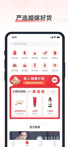 汇集了上千款精选婚嫁用品,从喜糖盒到婚房装饰,应有尽有。所有商品都经过品质把关,支持一键比价和分期付款,让新人可以轻松置办婚礼所需的各种物品。
