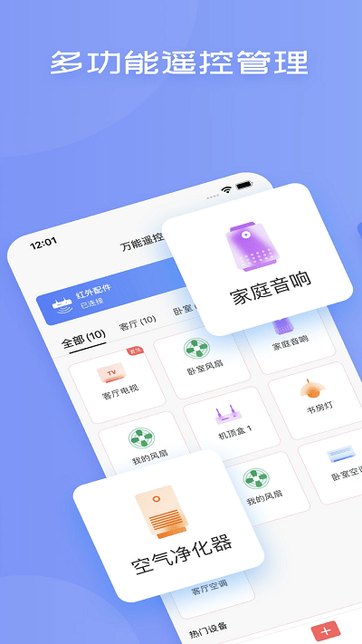 高颜值界面:采用极简主义设计理念,界面清新美观,操作直观流畅。通过简单的滑动和点击就能完成所有操作,真正实现"一扫而空"的智能遥控体验,让你的手机成为最时尚的万能遥控器。