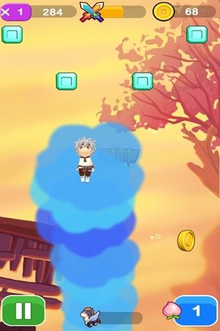 晃动手机控制人物进行移动,拾取空中的道具和金币,创新的体感操作带来全新游戏体验。