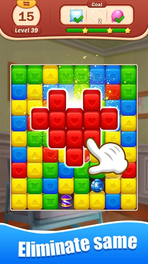 最经典的消除游戏玩法在本作中得到完美呈现,简单易上手的操作让各个年龄段的玩家都能快速融入其中。每次都要击碎掉相同颜色的方块,这种传统玩法经过精心设计后更具挑战性和趣味性。出现的方块是要击碎的不能漏掉,游戏会通过视觉提示和音效反馈来帮助玩家更好地完成消除任务。
