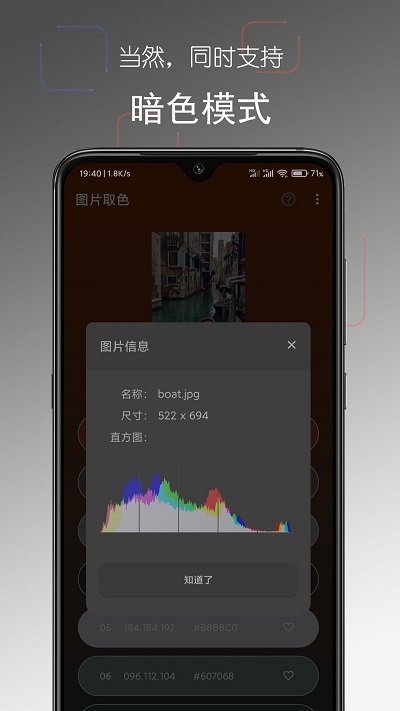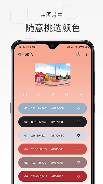 智能图片分析功能:软件能自动识别图片中的主要色彩并生成详细色板,让您轻松挑选所需颜色;