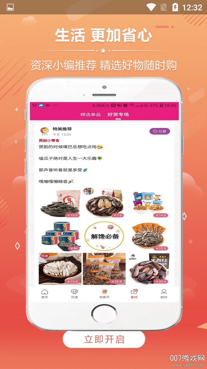 优选频道精选全网高性价比商品,按"9.9专区"、"大牌折扣"、"品质生活"等主题分类展示。每周更新200+精选好物,专业买手团队严格把关,确保商品质量与价格优势。用户可通过筛选功能快速找到符合需求的商品。